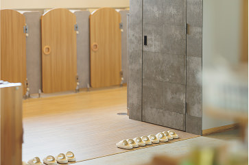 園の入り口には、指紋認証によるセキュリティシステムを導入。あらかじめ登録された保護者や職員の指紋だけが通過できるしくみで、不審者の侵入を未然に防ぎます。