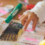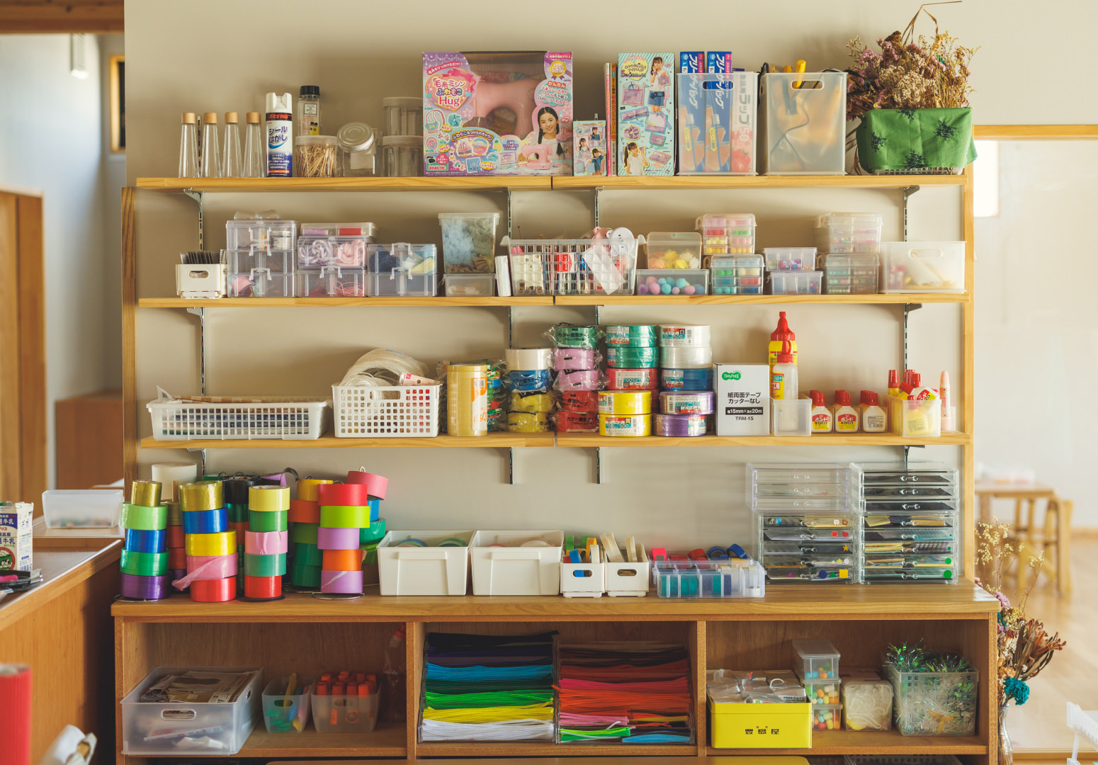 「環境は第3の教師」という考えを大切にし、クレヨン、色鉛筆、ペンなどの絵画道具など、たくさんの素材と道具を使ってクリエイティビティを最大限に引き出する環境を用意。保護者から寄付された布素材なども活用され、創作意欲を後押しします。