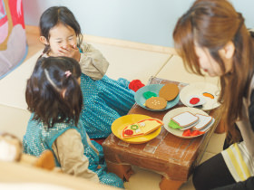 私たちが特に力を入れているのが、創造力を育む「アトリエルーム」。もりながこども園の子どもたちは、既製品のおもちゃではなく、自分たちで作ったおもちゃで遊ぶのがスタンダード。頭の中のイメージを形にするため、アトリエには多様な素材や道具が揃えられ、子どもたちが自由に手に取れるよう工夫されています。何をつくるか、どんな色や素材にするかをすべて自分で決める制作は、個性や創造性を存分に発揮できる時間。完成した作品はサークルタイムで発表し合い、他者の想像に触れながら学びを深めていきます。